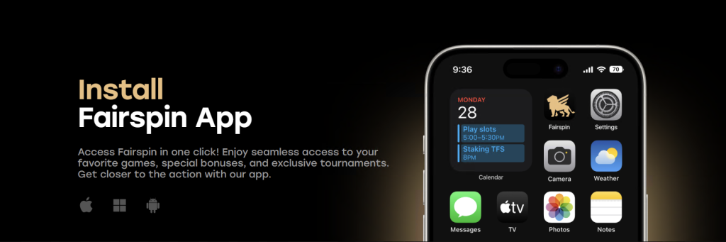 De modernen Spiller ass net méi un en Desktop-Computer gebonnen. Hautdesdaags fannen iwwer 70% vun de Spiller iwwer mobilen Apparater statt a Fairspin huet sech perfekt dorop virbereet. Amplaz d’Spiller mat luesen Apps aus den App-Stores ze belaaschten, hu mir eng High-End Fairspin app Léisung entwéckelt, déi d’PWA (Progressive Web App) Technologie benotzt.
